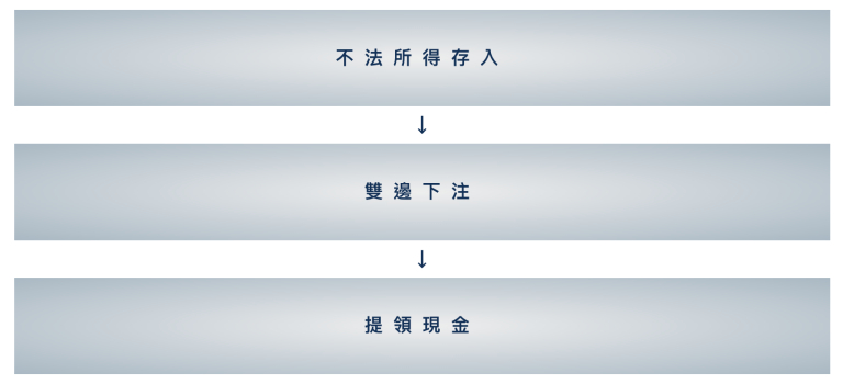 洗錢集團利用博弈行業的手法之一是將非法資金兌換成賭場籌碼,在賭場內進行下注,然後再將籌碼轉換回現金。離開時,他們聲稱這些利益是在賭場內贏得的。