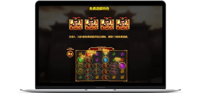 《戰神呂布》這款遊戲擁有多種引人入勝的遊戲特色,不僅包含別具一格的消除玩法,還有許多挑戰等您來嘗試。免費遊戲模式能顯著提升您的分數,而隨機掉落的倍數更能帶給您驚喜不斷的獎金。加上遊戲中的倍數獎勵和特殊符號,讓您有更多贏取高分的機會。在《戰神呂布》的世界中,您可以挑戰自我,盡情享受無窮的遊戲樂趣。現在就來體驗這個豐富多彩的遊戲世界吧!