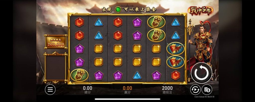 "戰神呂布"是一款消除型電子遊戲,為您帶來全新的遊戲體驗!不同於傳統的轉輪玩法,此遊戲要求您消除相同的圖標以取得勝利。最高可達51000倍的驚人獎金等待著您。立即體驗這款爆分率極高的電子老虎機,享受別樣的遊戲樂趣吧!